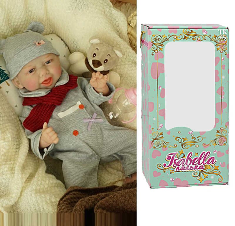 Пупс QM 24067 (12) "TK Group", функціональний, датчик руху, звуки: сміх, плач, засинає, висота: 42 см, гумовий, пустушка, пляшечка, памперс, шапочка, шарфик, в коробці