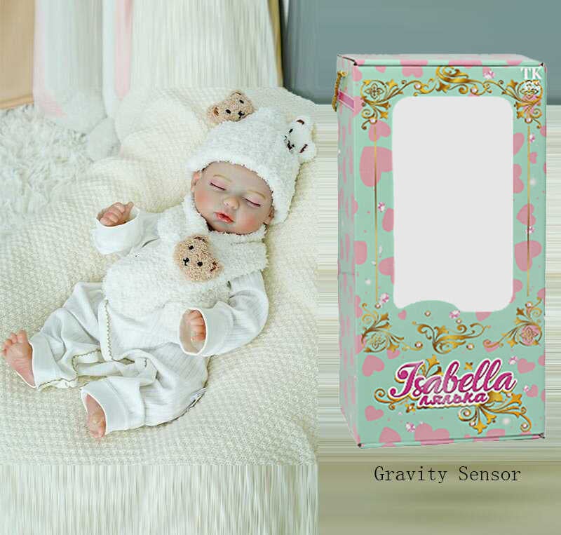 Пупс QM 24105 (12) "TK Group", функціональний, датчик руху, звуки: сміх, плач, засинає, висота: 42 см, гумовий, пустушка, пляшечка, памперс, капелюшок, шарф, в коробці
