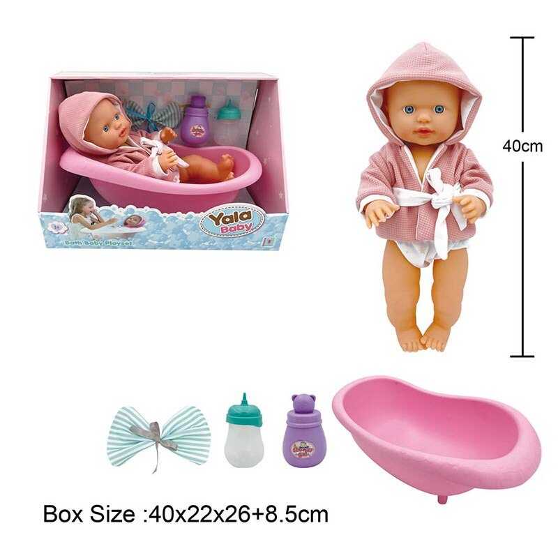 - Пупс YL 2440 J-C (12) висота 40 см, п'є з пляшечки, ходить на горщик, ванна, халат, рушничок, в коробці