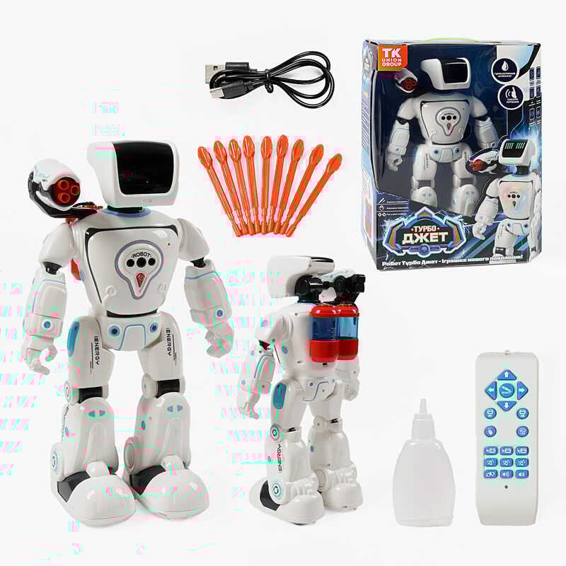 - Робот на радіокеруванні 79977 (8) "TK Group", ОЗВУЧУВАННЯ УКРАЇНСЬКОЮ МОВОЮ, підсвічування, сенсорне керування, пісні, казки, вікторина, рухи, танці, стріляє ракетами, гідроакумулятор, usb-дріт, пляшечка, інструкція, в коробці