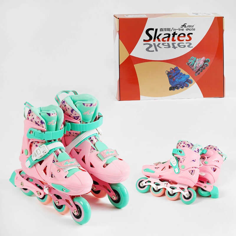 - Ролики 17107-М розмір 34-37 (6) колір РОЖЕВИЙ, колеса PU, ПЕРЕДНЄ КОЛЕСО СВІТЛО, d колес – 6.5 см, в коробці