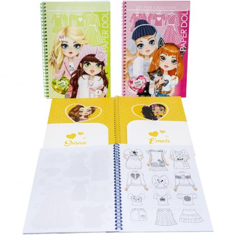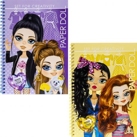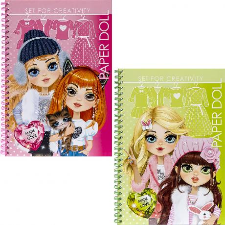Розмальовка на спіралі "Лялька з одягом" має розміри 166 х 240 мм та складається з 16 аркушів. Обкладинка містить 2 шт в одній розфарбовці з кишенею на кожній обкладинці. Використано картон односторонній 220 г/м², друк 4+4. Внутрішній блок виконаний з офсетного паперу 100 г/м², також з друком 4+4. Упаковка містить один дизайн.