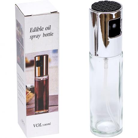 Розпилювач для олії та оцту — зручний кухонний аксесуар для рівномірного нанесення рідких приправ під час приготування та подачі страв. Об’єм — 100 мл, загальна довжина — 17,5 см, висота скляної колби — 11,5 см, вага — 105 г. Діаметр дна 4 см. Корпус виготовлений зі скла та пластику. Зверху розташована рифлена кнопка розпилювача, що забезпечує зручне натискання та рівномірне розпилення рідини. Прозора колба дозволяє контролювати рівень вмісту. Підходить для використання з рослинною та оливковою олією, оцтом та іншими рідкими соусами. Упакований у коробку розміром 17,5×5×4,5 см. Ціна вказана за 1 одиницю товару. Товар вигідний для оптових магазинів і підходить для роздрібного продажу.
