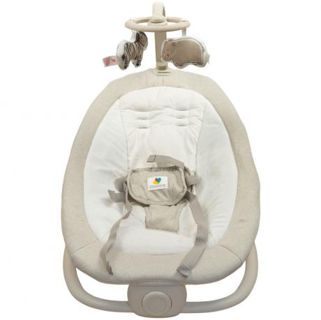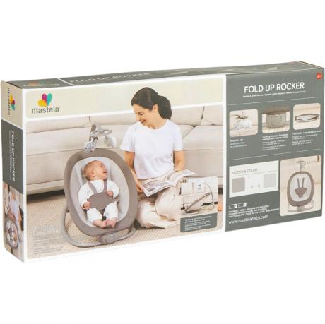 Дитячий шезлонг-качалка Mastela призначений для дітей вагою 3–9 кг. Розмір у зібраному вигляді — 74×50×70 см, довжина гамака — 74 см, висота — 45 см. Конструкція дозволяє дитині самостійно розгойдуватися, передбачена фіксація у нерухомому положенні. Оснащений знімною панеллю з іграшками, функцією заспокійливої вібрації та кількома мелодіями з регулюванням гучності. Працює від 2 батарейок типу AA/LR6. Компактно складається для зберігання та транспортування, розмір коробки — 59×29×10 см. Товар вигідний для оптових магазинів і підходить для роздрібного продажу.
