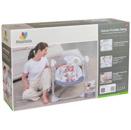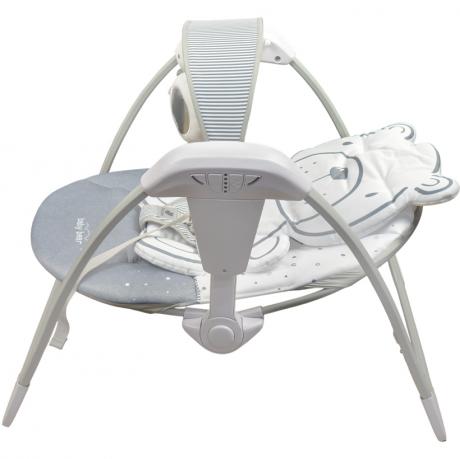 Дитячий заколисуючий центр Mastela 6513 призначений для дітей вагою 3–11 кг та використовується для комфортного відпочинку і м’якого заколисування малюка вдома. Розмір гойдалки — 74×56×56 см, розмір гамака — 73×49 см, що забезпечує зручне розміщення дитини. Модель оснащена 5 швидкостями гойдання, 3 режимами таймера та 7 мелодіями, двопозиційним нахилом гамака і ременями безпеки з плечовим фіксатором. У комплект входять знімна дуга з трьома іграшками та знімний підголівник. Центр легко складається для зберігання та транспортування. Працює від 4 батарейок типу C/LR14 (не входять до комплекту) або від USB-кабелю (в комплекті), додається інструкція англійською мовою. Розмір коробки — 61×37×18 см. Товар вигідний для оптових магазинів і підходить для роздрібного продажу.