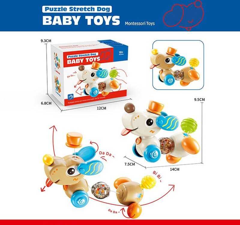 - Розвивальна іграшка 9093 (168) 2 кольори, "Собачка", тріскачка, брязкальце, елементи на гумці, пискавка, в коробці