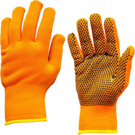 Рукавички робочі трикотажні з ПВХ-точкою помаранчеві 251