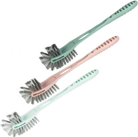 Господарська двостороння щітка 8219-1 з довгою ручкою призначена для зручного та ефективного прибирання різних поверхонь у побуті. Загальна довжина виробу становить 46 см, що дозволяє працювати без зайвих нахилів і легко очищати важкодоступні місця. Щітка має дві робочі зони: основну розміром 10×5 см та додаткову — 5×5 см, що робить її універсальною для різних типів забруднень. Щетинки висотою 3,5 см добре видаляють бруд і наліт. Пластикова ручка довжиною 34 см зручна у використанні та стійка до вологи. Щітка підходить для кухні, ванної кімнати, сантехніки, плитки й господарських приміщень. Оптимальний варіант для дому, клінінгу та оптового продажу.