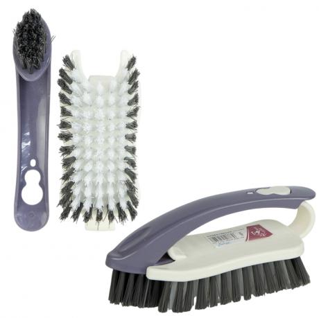 Універсальна щітка-утюжок 2 в 1 моделі 2620 призначена для зручного та ефективного очищення різних поверхонь у побуті. Головною перевагою виробу є знімна додаткова щітка, яка розширює функціональність і дозволяє виконувати як основне, так і точкове прибирання. Загальна довжина щітки становить 15 см, ширина — 5,5 см, висота — 7 см. Основна робоча зона має розмір 14×5,5 см і оснащена щетинками висотою 2,5 см, які добре видаляють забруднення, не пошкоджуючи поверхні. Знімна щітка довжиною 16 см і шириною 2,5 см має робочу поверхню 5×3 см та зручна для очищення важкодоступних місць. Ергономічна пластикова ручка забезпечує надійний хват. Практичний вибір для дому та оптового продажу.
