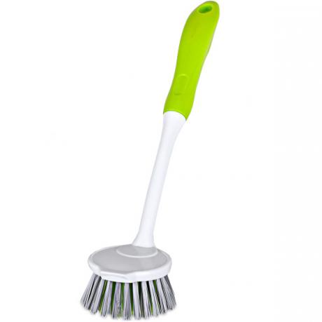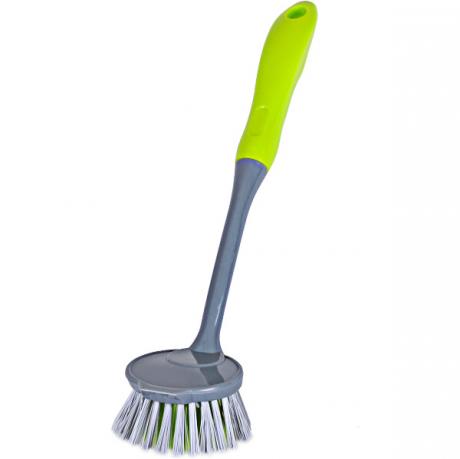 Щітка універсальна кругла з ручкою 3550-A — зручний господарський інструмент для очищення різних поверхонь у побуті та професійному використанні. Кругла робоча зона діаметром 6,5 см забезпечує ефективне видалення забруднень, а щетинки висотою 3 см добре справляються з брудом, не пошкоджуючи поверхню. Довжина ручки — 23 см, загальна довжина виробу — 28 см, що гарантує зручний хват і комфорт під час роботи. Підходить для прибирання кухні, ванної кімнати, сантехніки, плитки та інших господарських потреб. Практичний варіант для роздрібних і оптових продажів.