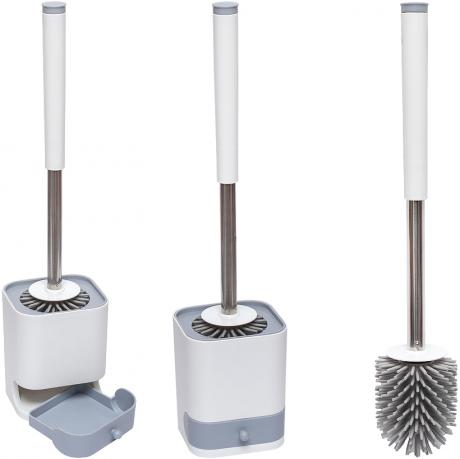 Щітка-йоржик для унітаза з підставкою призначена для очищення внутрішніх поверхонь. Робоча частина виготовлена із силікону, щетинки не дряпають поверхню та сприяють видаленню забруднень. Розмір підставки 12×14 см, довжина щітки 41 см, повна висота в зібраному вигляді 45 см. Підставка виконана з пластику та оснащена висувним піддоном для зливу накопиченої рідини. Передбачений самоклейкий гачок для настінного кріплення, що допомагає заощаджувати місце. Ціна вказана за 1 одиницю товару. Товар вигідний для оптових магазинів і підходить для роздрібного продажу