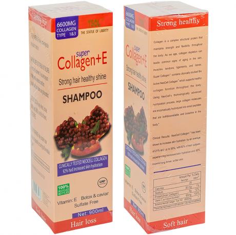Шампунь для волосся 900 мл створений для зміцнення ослабленого волосся та зменшення випадіння. Формула з колагеном і вітаміном Е покращує еластичність, надає об’єм і здоровий блиск, робить волосся густішим та доглянутим. Підходить для регулярного використання, м’яко очищує і підтримує природний баланс шкіри голови. Ідеальний для оптової торгівлі. Розмір упаковки: 27×8×8 см.