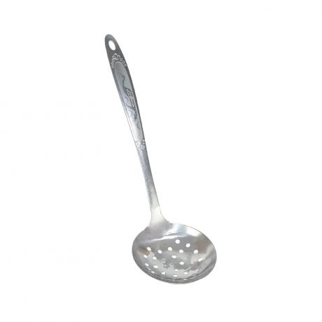 Металева шумівка довжиною 33 см призначена для зручного виймання та проціджування продуктів під час приготування страв. Виріб виготовлений із міцного металу, стійкого до високих температур, вологи та щоденних навантажень, що гарантує довговічність у використанні. Перфорована робоча частина ефективно відокремлює рідину, олію або піну, зберігаючи цілісність продуктів. Подовжена ручка забезпечує безпечну роботу з гарячим посудом, фритюрницями та мармітами. Класичний дизайн «Срібний птах» робить шумівку універсальною для професійних кухонь і побуту. Виріб широко застосовується у закладах HoReCa, їдальнях і кейтерингу. Упаковка — індивідуальний пакет, зручний для зберігання, транспортування та оптового продажу. Надійний вибір кухонного приладдя.
