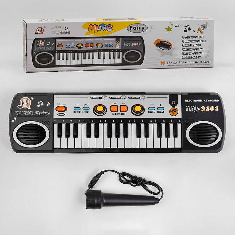 - Синтезатор MQ 3201 (48/2) на батарейках, мікрофон, 8 ритмів, 3 тони, 24 демо мелодії, в коробці