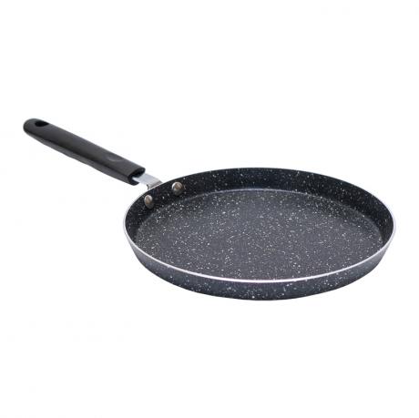 Млинцева сковорода D22 см з антипригарним покриттям «мармурова крихта» підходить для приготування млинців, оладок та інших тонких страв. Покриття забезпечує рівномірний нагрів, запобігає пригоранню та полегшує догляд. Сковорода сумісна з індукційними плитами, а також з іншими типами варильних поверхонь. Невисокий борт забезпечує зручність у використанні.