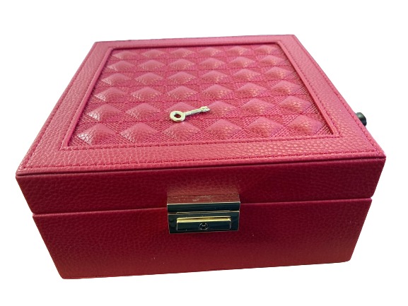 - Скриня (Шкатулка) органайзер з замком для зберігання прикрас біжутерії зі шкірозамінника з дзеркалом 012
