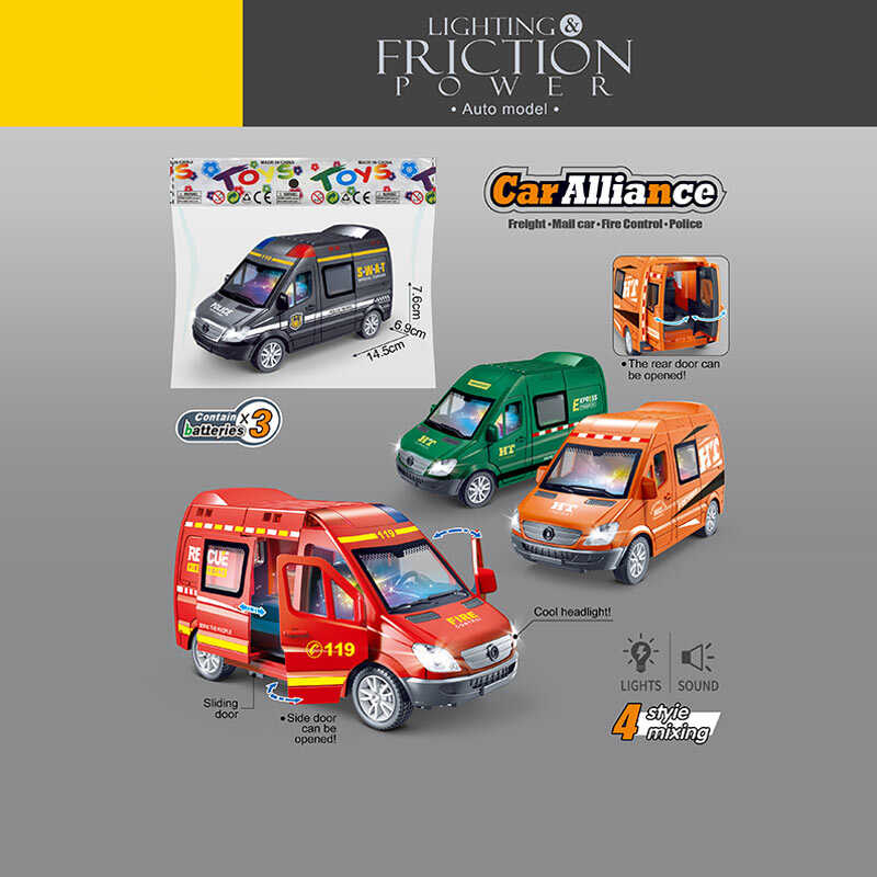 Спецтехніка 7751 (100) 4 кольори, звуки, підсвічування, інерція, гумові шини, на батарейках, відчиняються двері, в пакеті, ВИДАЄТЬСЯ ТІЛЬКИ МІКС ВИДІВ