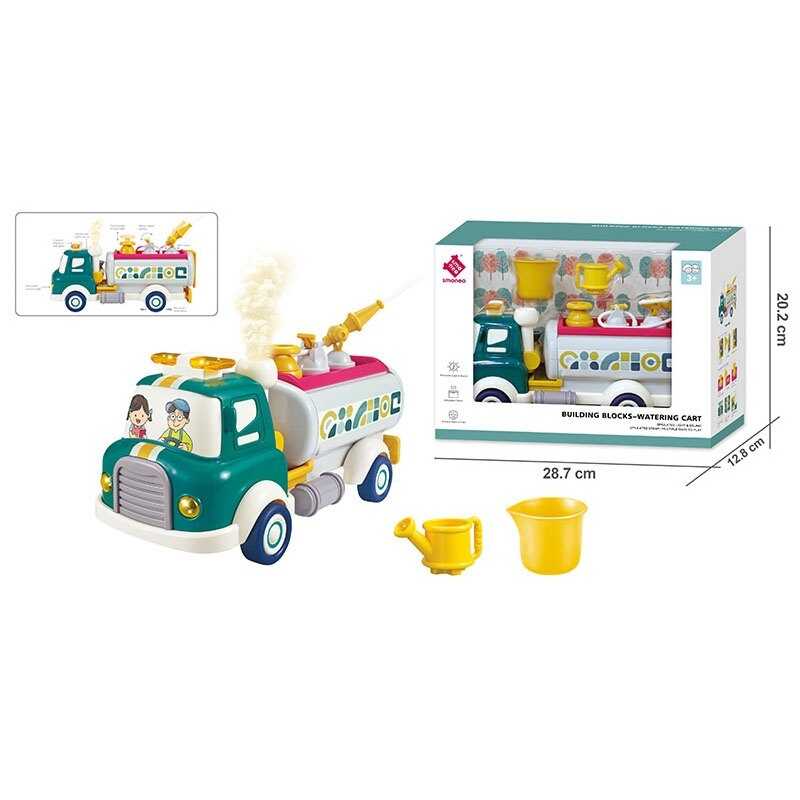 - Спецтехніка A 88034 (18) помповий механізм, бризкає водою, інерція, підсвічування, звуки, парогенерація, рухомі елементи, конструктор, на батарейках, в коробці