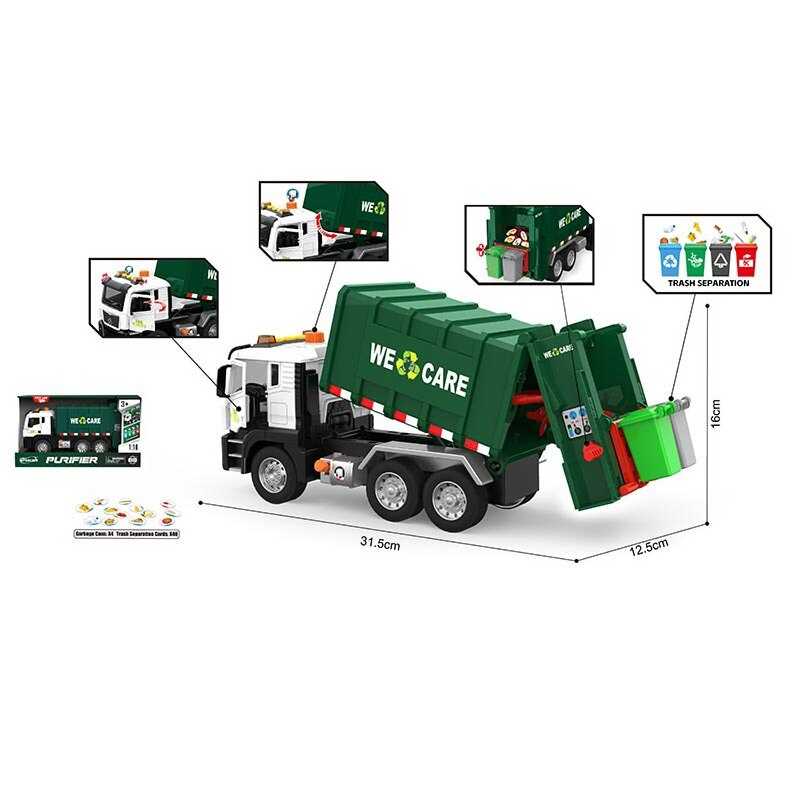 Спецтехніка WY 1115 A (18) сміттєвоз, масштаб - 1:10, підсвічування, звукові ефекти, рухомі деталі, інерція, гумові шини, в коробці
