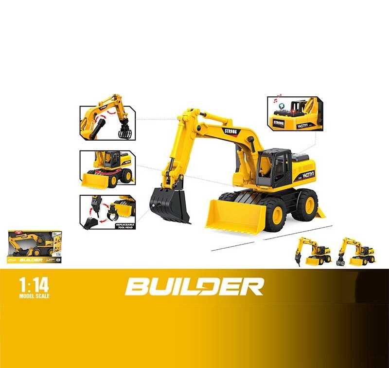 Спецтехніка WY 1139 ABC (18) інерція, гумові шини, на батарейках, звуки, підсвічування, насадки, масштаб 1:14, механічний ківш, в коробці