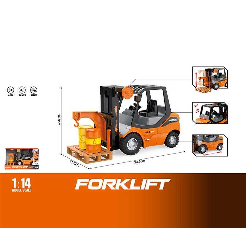 - Спецтехніка WY 372 A (18) “Навантажувач”, масштаб: 1:14, інерція, підсвічування, звуки, механічний підіймач, вантаж, гумові колеса, в коробці