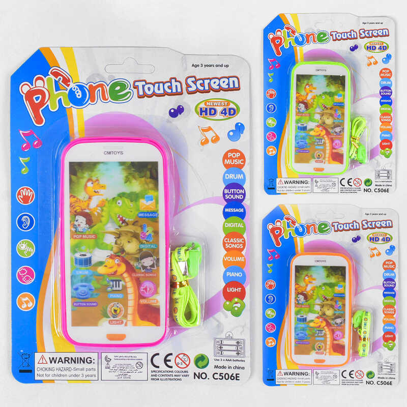 - Телефон музичний С 506 Е9 (240/2) 3 кольори, лампочка, шнурок, звуки, пісні, на листі