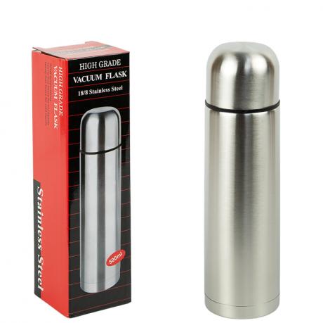 Термос 500 мл із нержавіючої сталі 18/8 — практичне та надійне рішення для зберігання гарячих і холодних напоїв у дорозі, на роботі та під час відпочинку.Розмір термоса 23×6,5 см, компактний формат підходить для сумки або рюкзака.