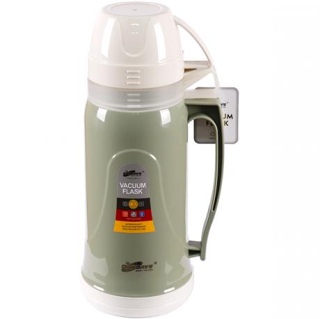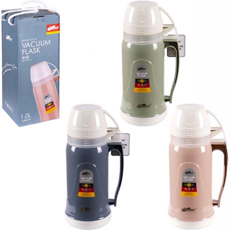 Термос з об'ємом 1,0 л має скляну колбу та пластиковий корпус. Вакуумна ізоляція забезпечує збереження тепла до 12 годин і холоду до 24 годин. Розміри термоса становлять 31x12x12 см.