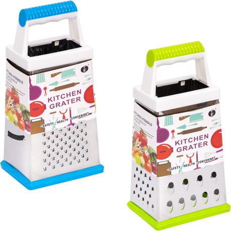Тертка кухонна — зручний інструмент для подрібнення продуктів у домашніх умовах. Розмір — 6,5×9×19 см. Оснащена 4 робочими сторонами, що забезпечують різні типи нарізання та подрібнення продуктів. Підходить для сиру, овочів, фруктів та інших інгредієнтів. Корпус виготовлений з нержавіючої сталі, ручка — пластикова для зручного утримання. Конструкція доповнена протиковзкою накладкою в нижній частині, яка підвищує стійкість під час роботи. Ціна вказана за 1 одиницю товару. Товар вигідний для оптових магазинів і підходить для роздрібного продажу.