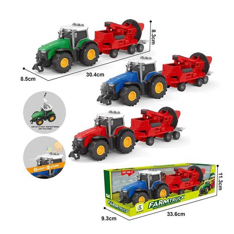 Трактор 0488-604 D (96/2) 3 кольори, причеп, підсвічування, звук, рухомі елементи причепа, прогумовані колеса причепа, в коробці, ВИДАЄТЬСЯ ТІЛЬКИ МІКС ВИДІВ