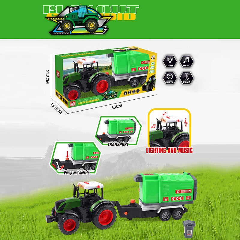 - Трактор 687-147 B (18/2) “Сміттєвоз”, довжина: 50 см, причеп, інерція, підсвічування, звук, помповий підіймач, механічний підіймач, капот підіймається, в коробці