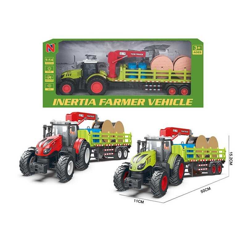 Трактор 99-56 A (24) 2 кольори, масштаб: 1:14, причеп, інерція, підсвічування, звук, гумові колеса, кран, котушки, вантаж, рухомі елементи, в коробці