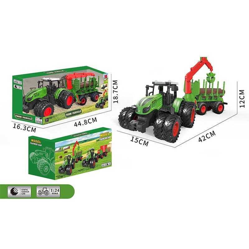 - Трактор 99-83 A (24) масштаб: 1:24, причеп, маніпулятор, вантаж, гумові колеса, рухомі елементи, в коробці