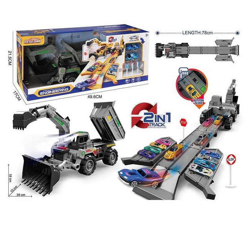 - Трек 660 S-98 Штрихкод = 64294 (16/2) 2 металопластикові машинки, спецтехніка, рухливий ківш, звуки, мелодія, підсвічування, в коробці