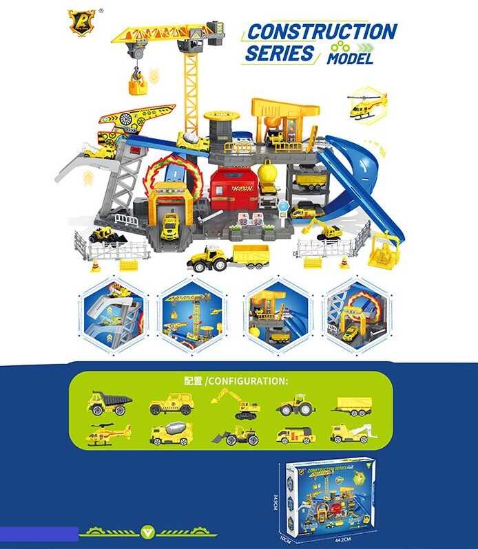 - Трек P 979 A (5) 8 машинок, функціональний підйомний кран, рухливі елементи, аксесуари, в коробці