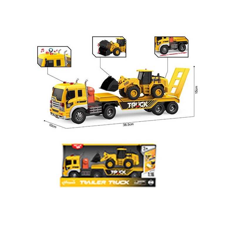 Трейлер WY 571 P (18) "Спецтехніка", інерція, світло, звук, масштаб 1:16, гумові колеса, екскаватор, в коробці