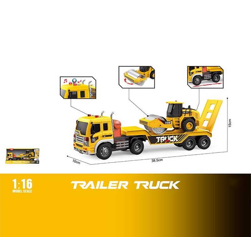 - Трейлер WY 571 Q (18) "Спецтехніка", інерція, світло, звук, масштаб 1:16, гумові колеса, дорожній каток, в коробці