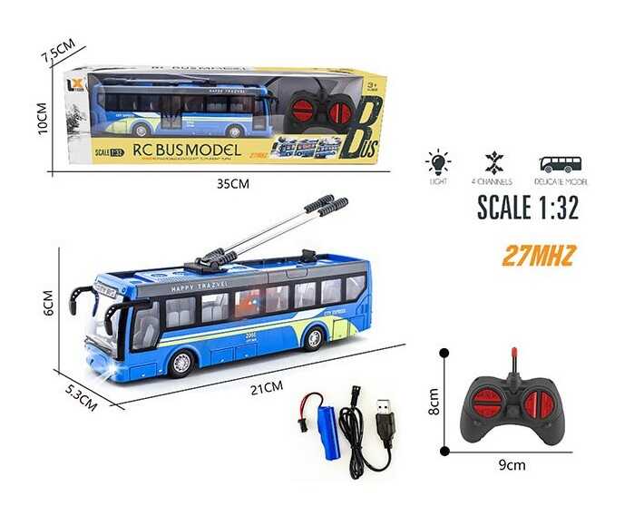 - Тролейбус на радіокеруванні 135-2 (72) масштаб: 1:32, акумулятор: 3.7 V, пульт: 27 MHz, підсвічування, прогумовані колеса, USB-кабель, в коробці