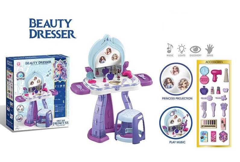 - Трюмо 922-226 (12) 37 елементів, розмір: 60.5х27.5х74 см, висота стільчика: 21 см, проєкція, звуки, підсвічування, аксесуари, в коробці