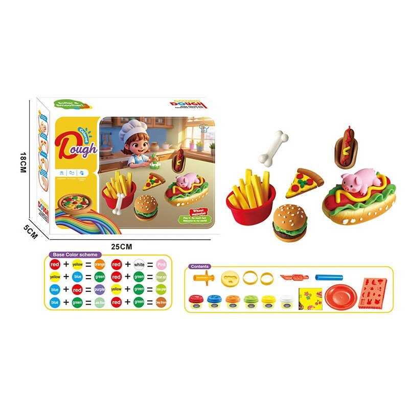 - Тісто для ліплення 9010 (72/2) екструдер, 6 кольорів тіста, фігурні форми, ніж, тарілочка, в коробці