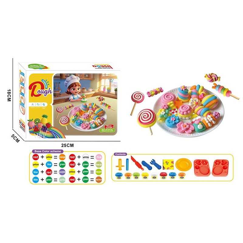 - Тісто для ліплення 9013 (72/2) екструдер, 8 кольорів тіста, тарілочка, 2 ножі, виделка, палички, 2 фігурні форми, в коробці