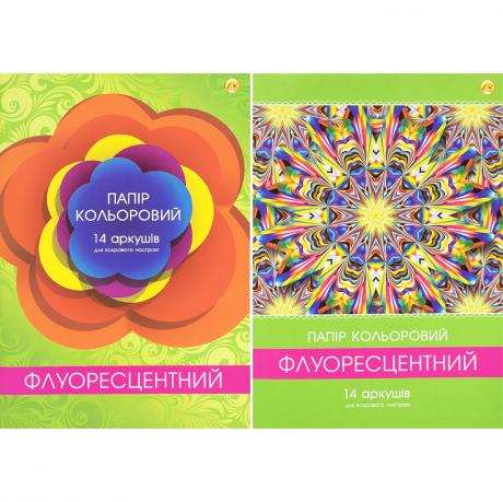 - Цветная бумага А4 "Флуоресцентная" 14 листов (7цв.) скоба, офсет 90 г/м2 ТМ Тетрада ТЕ259