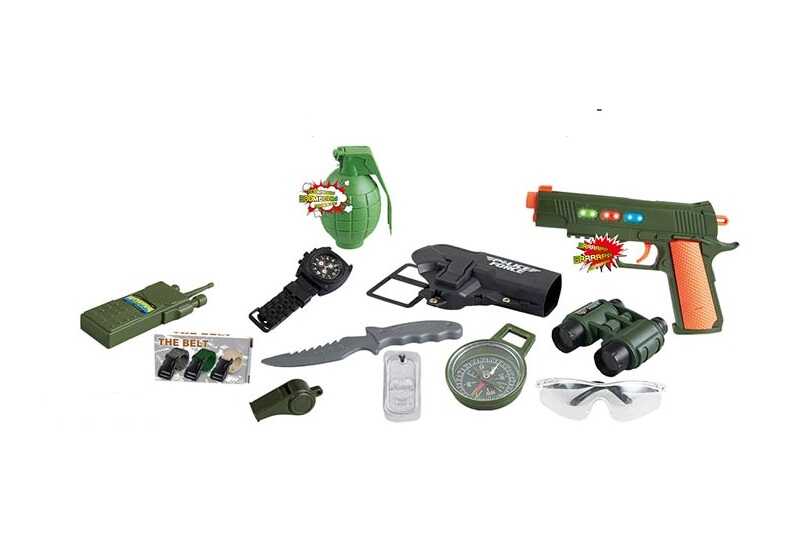- Військовий набір CH 222 A2 (48/2) пістолет у кобурі, шолом, окуляри, бінокль, годинник, компас, жетон, граната, ніж, у сітці