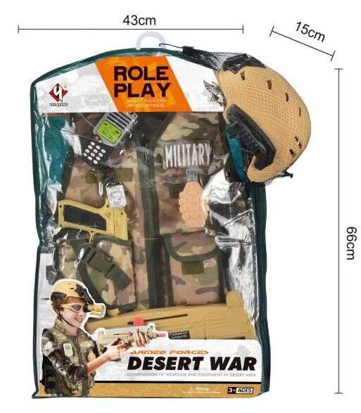 - Військовий набір D 012 (12) жилет, автомат, пістолет, граната, каска, ніж, окуляри, рація, у пакеті
