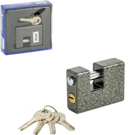 Навісний замок напівзакритого типу — практичне рішення для захисту приватної власності та обмеження доступу. Розмір — 8×6,5×2,3 см, висота дужки — 3 см, діаметр — 1,2 см, вага — 730 г. Корпус виготовлений з металу із захисним молотковим покриттям, напівзакрита конструкція дужки обмежує доступ до неї та зменшує ймовірність механічного впливу, дужка сталева. Підходить для використання на воротах, складах, господарських будівлях і в побуті. Упакований в коробку розмірами 12,5х12,5х2,3 см, в комплект входять 4 ключі довжиною 5,5 см. Ціна вказана за 1 одиницю товару. Товар вигідний для оптових магазинів і підходить для роздрібного продажу.