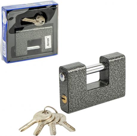 Навісний замок напівзакритого типу — практичне рішення для захисту приватної власності та обмеження доступу. Розмір — 9×6,5×2,5 см, висота дужки — 3 см, діаметр — 1,2 см, вага — 780 г. Корпус виготовлений з металу із захисним молотковим покриттям, напівзакрита конструкція дужки обмежує доступ до неї та зменшує ймовірність механічного впливу, дужка сталева. Підходить для використання на воротах, складах, господарських будівлях і в побуті. Упакований в коробку розмірами 12,5х12,5х2,3 см, в комплект входять 4 ключі довжиною 5,5 см. Ціна вказана за 1 одиницю товару. Товар вигідний для оптових магазинів і підходить для роздрібного продажу.