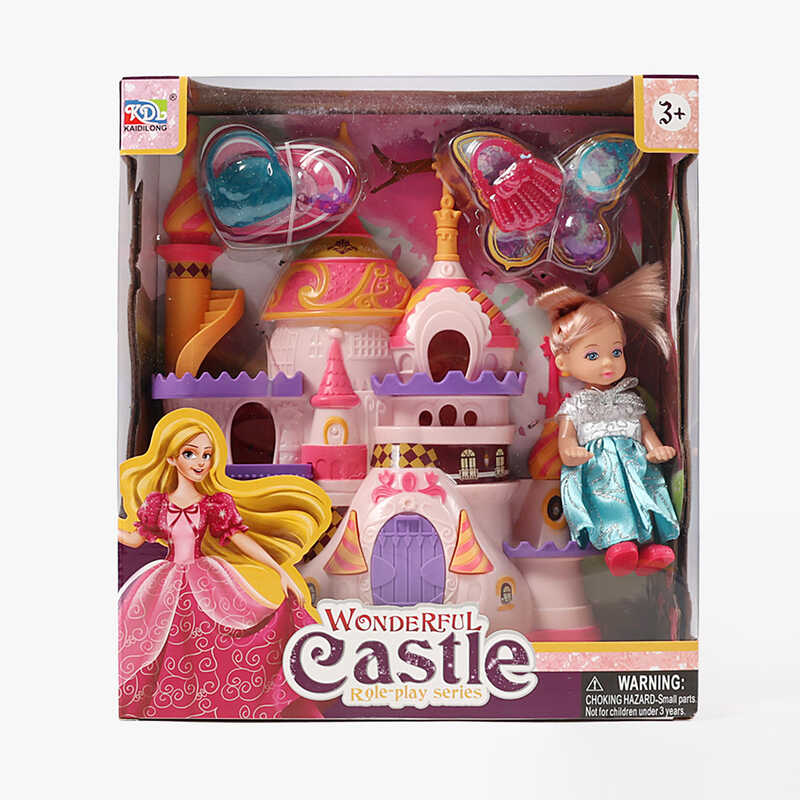 Замок з лялькою KDL 53 (84/2) висота ляльки: 10 см, шарнірні з'єднання, знімна сукня, аксесуари, розмір замка: 14х19, відчиняються дверцята, в коробці