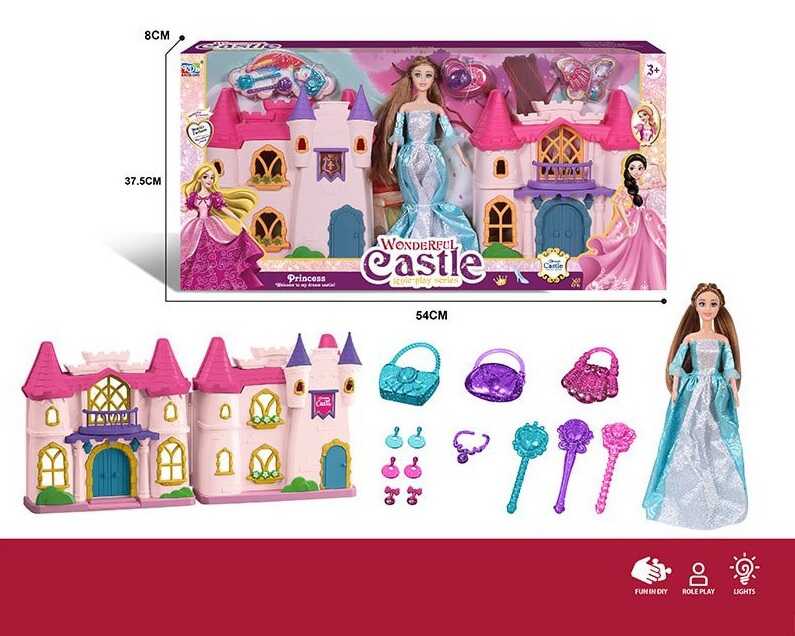 - Замок з лялькою KDL 60 (16) лялька висотою 28 см, шарнірні з’єднання, знімний одяг, аксесуари, замок складається, в коробці