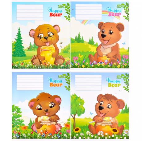 Зошит містить 12 аркушів офсетного паперу щільністю 60 г/м². Білизна паперу 98%. Обкладинка з картону щільністю 170 г/м² з червоними полями. У ящику "mix" 32 популярні картинки.