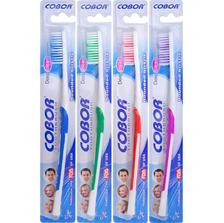 Пластикові гігієнічні зубні щітки «Cobor» із синтетичною щетиною хвилеподібної форми призначені для щоденного комплексного догляду за ротовою порожниною. Хвиляста щетина ефективно очищає поверхню зубів і міжзубні проміжки, допомагаючи видаляти наліт та залишки їжі без шкоди для емалі. Довжина зубної щітки становить 19 см, розмір головки — 3,5×1 см, висота щетинок — 1,2 см, що забезпечує комфорт і якісне чищення. Кожна щітка має індивідуальну упаковку у блістері розміром 23×3,5 см з підвісом. Транспортна упаковка 23,5×10×6 см містить 12 блістерів і оптимальна для оптового продажу та роздрібної торгівлі.